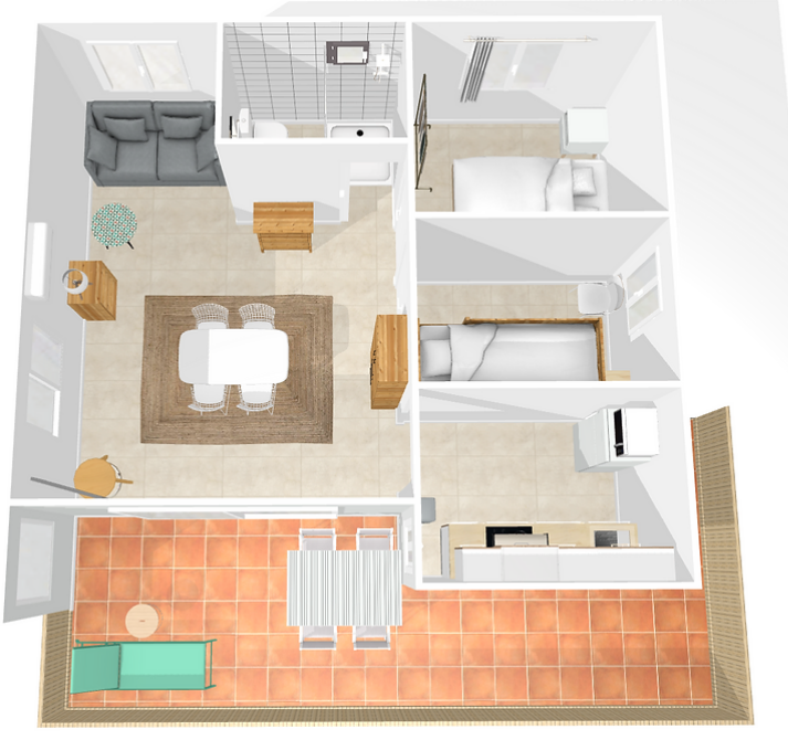 2 appartements, 2 entrées indépendantes, 2 cuisines équipées, 3 terrasses, 3 salles d'eau, 2 locaux buanderie, 8 couchages maximum, climatisation dans chaque pièce principale, etc...